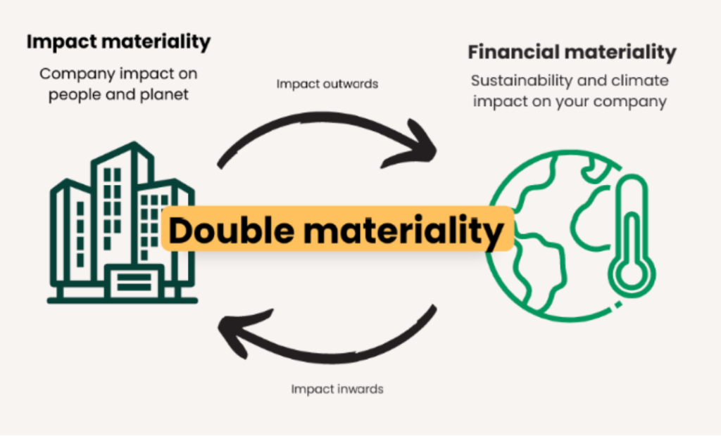 Om te kunnen rapporteren conform de ESRS standaarden moeten bedrijven een dubbele materialiteitsanalyse uitvoeren. In deze analyse stellen bedrijven vast wat de impact van het bedrijf op mens en milieu is (impact materialiteit) én wat de impact van klimaatverandering op de het bedrijf is (financiële materialiteit). Een voorbeeld van materiele impact is de CO2 uitstoot van een fabriek. Het risico van overstromingen als gevolg van klimaatverandering waardoor een toeleverancier getroffen kan worden, is een voorbeeld van financiële impact.